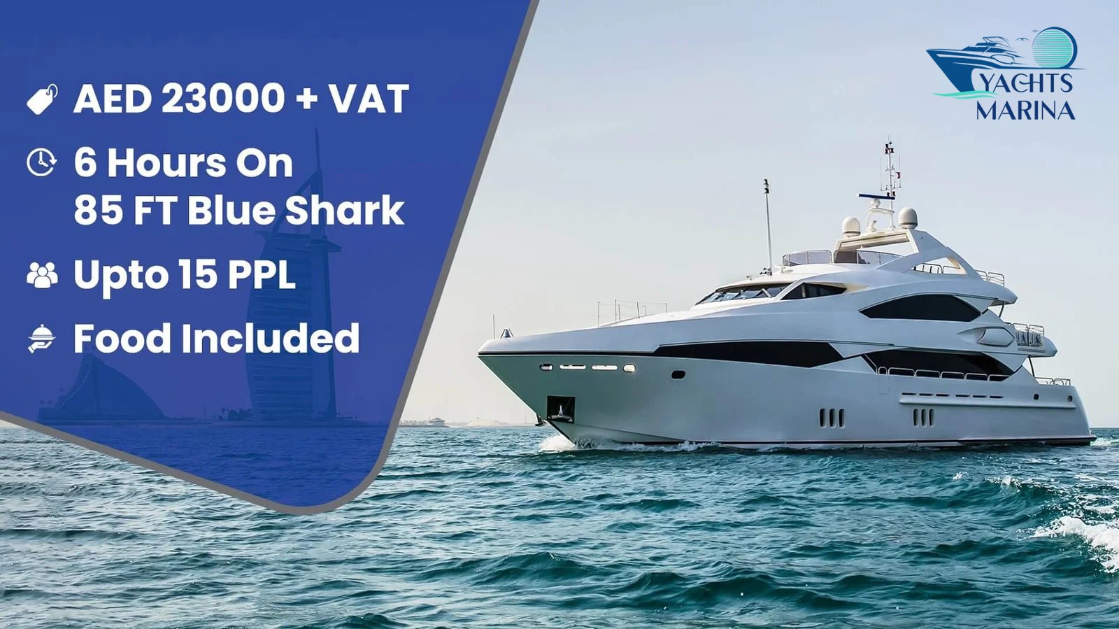 | 1000AED Per Hour: | Dubai Harbour: | Capacity: | Pax 50: |